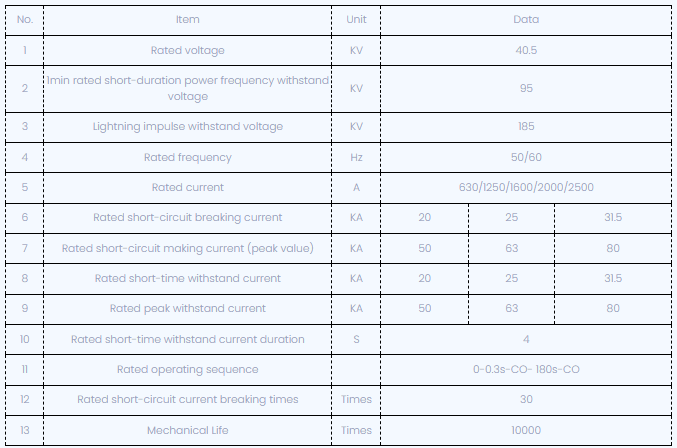 VSG-40.5 serieko hutsezko zirkuitua. Diseinu-kontzeptu paregabearen arabera, hiruhilekoen kontzeptu bakarrarekin eta merkatuaren eskariarekin eta garapenarekin batera, 40,5 kv-ko tentsio kalifikatua da.