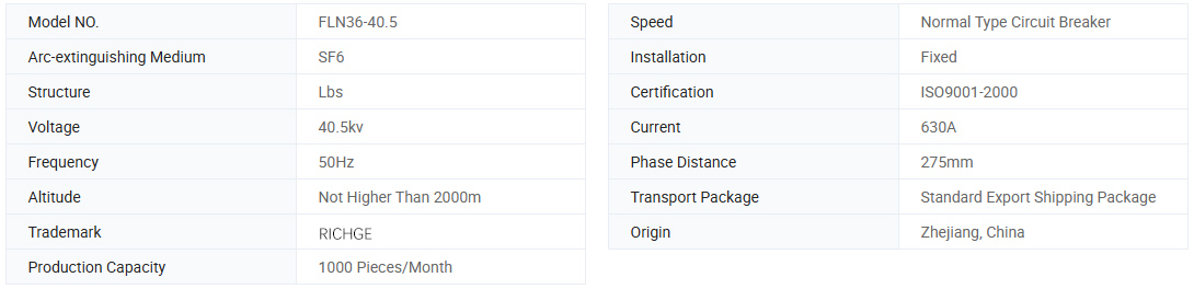 FLN36-40.5D / T630 Barruko sufrea hexafluoruroa (SF6) Karga-etengailua eta FLN36-40.5DR / 125 Karga etengailuaren metxa konbinazioa egokiak dira, hiru faseko hiru faseko eta terminaleko hornidura. Potentzia sistemetarako karga kontrol-lerroaren babes gisa erabiltzen dira. Karga-etengailuak karga korrontea, itxita eta karga gabeko transformadorea eta kable kargatzeko korrontea ixten ditu. KONBINAZIO-etxetresna elektriko konbinazioak zirkulazio laburreko korronteak puntuatu ditzakeen unean apurtu daitezke eta ekipamendu multzo osoak egokiak dira, hala nola, eraztun unitate nagusiak eta lauki motako azpiestazioak.