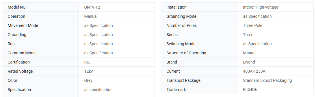 GN19-12 serie barruko tentsio handiko deskonektatzeko etengailua tentsio handiko etengailuen ekipoetakoa da, tentsio nominala 12KV, AC 50Hz eta sistema baino gutxiagoko potentzia sistemari aplikatzen zaio, CS6-1 eskuzko funtzionamendu-mekanismoarekin hornituta dago eta kargarik gabe zirkuitua apurtzeko eta egiteko erabiltzen da, baina tentsioarekin. Kutsadura murrizteko mota, altitude handiko mota eta pantaila elektrifikatua daude.