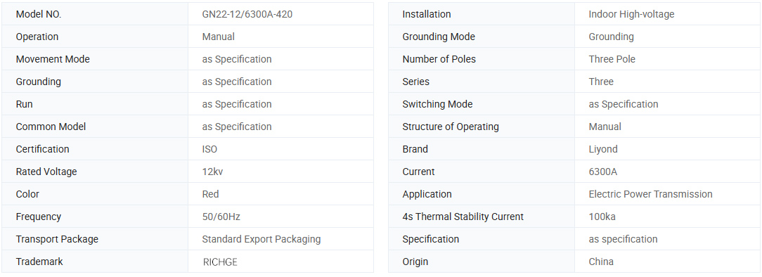 GN22-12 (C) (D) serieko barruko tentsio handiko deskonexio etengailua 12kV-ko tentsio nominala eta 50Hz-ko maiztasuna duten potentzia-sistemetarako diseinatuta dago. Gailu hau elektrizitate-sistemako zirkuituak irekitzeko eta ixteko erabiltzen da batez ere kargarik gabeko baldintzetan. Korronteari eusteko gaitasun handiak dituenez, aproposa da segurtasun handia eta maiz eragiketak behar dituzten aplikazioetarako. Gailua hainbat ingurumen-behar asetzeko konfigura daiteke.