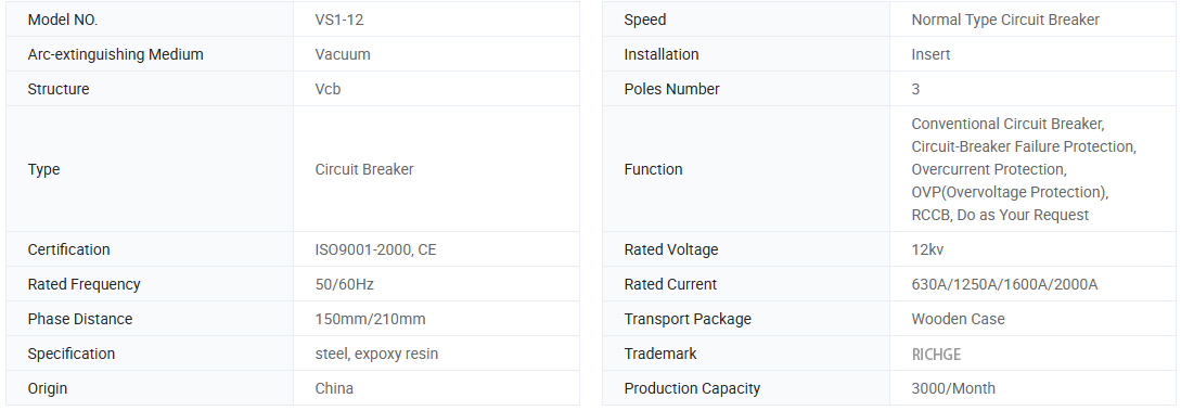 Vs1 (Zn63a) -12indoor AC MV Vacum Circuit Breaker hiru faseko hiru fasea da, 12kv-ko tentsioarekin bat egin daiteke, industria eta meatze enpresetan, potentzia landareetan eta hutsegite elektrikoak kontrolatzeko eta babesteko. Andi egokiak dira eragiketarik gabeko lekuetarako.