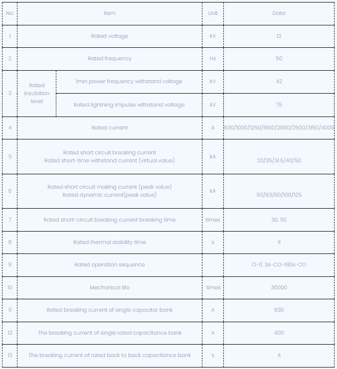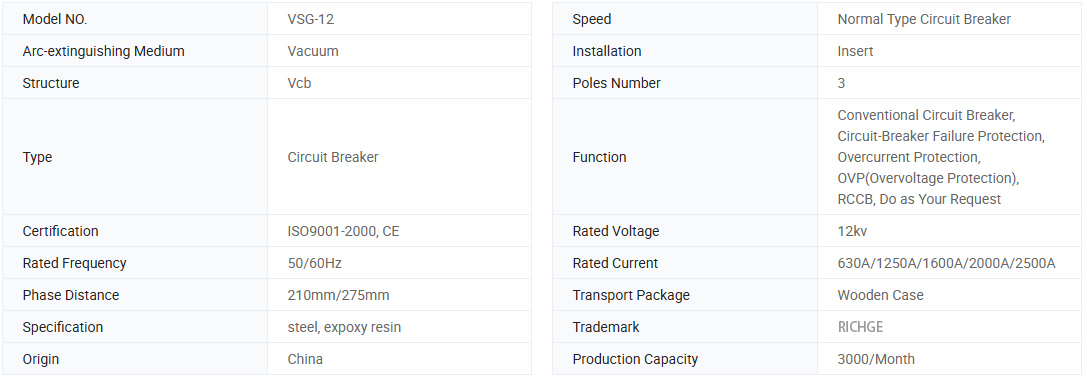 VSG-12 eskuz egindako mota hutsezko zirkuitua apurtzailea parametro teknikoa