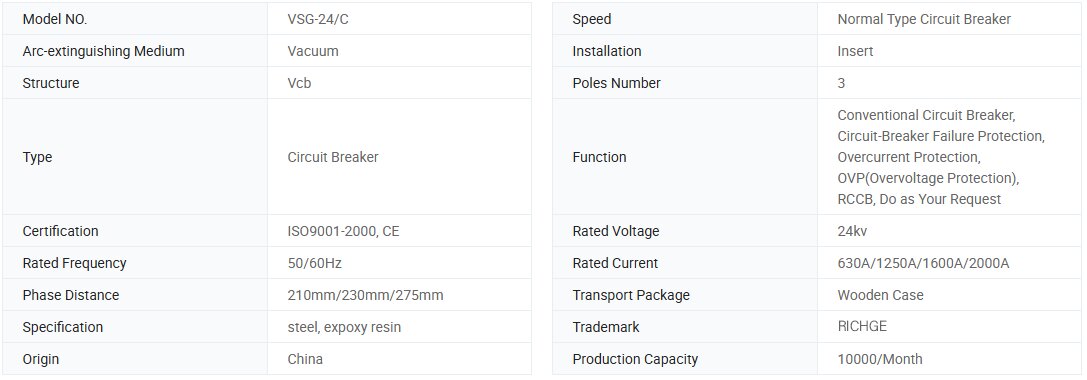 VSG-24C muntatutako tentsio handiko hutsezko zirkuitua Zirkuitua da, hiru faseko 50 (60) Hz, 24kv-ko potentzia sistema, industria eta meatze enpresak, zentral eta azpiestazioetarako karga korrontearen aldagaia gisa, korrika kargatzeko eta akatsen korrontea. Egokia da maiz eragiketa. Zentraletan, potentzia-saretan, petrokimikoetan, metalurgian, metroak, aireportuak, eraikinak eta bestelako proiektuetan erabilia.