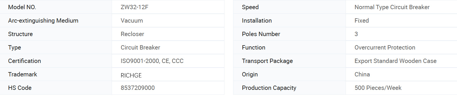 ZW32-12 serieko Kanpoko AC Tentsio handiko hutsezko zirkuituak Zirkuituak betetzen dituzte GB 1984 "AC tentsio handiko zirkuituak" eta Nazioarteko Elektrotekniko Batzordea IEC 60056 "Tentsio handiko AC zirkuitu-hausleak" eta beste estandar batzuk.